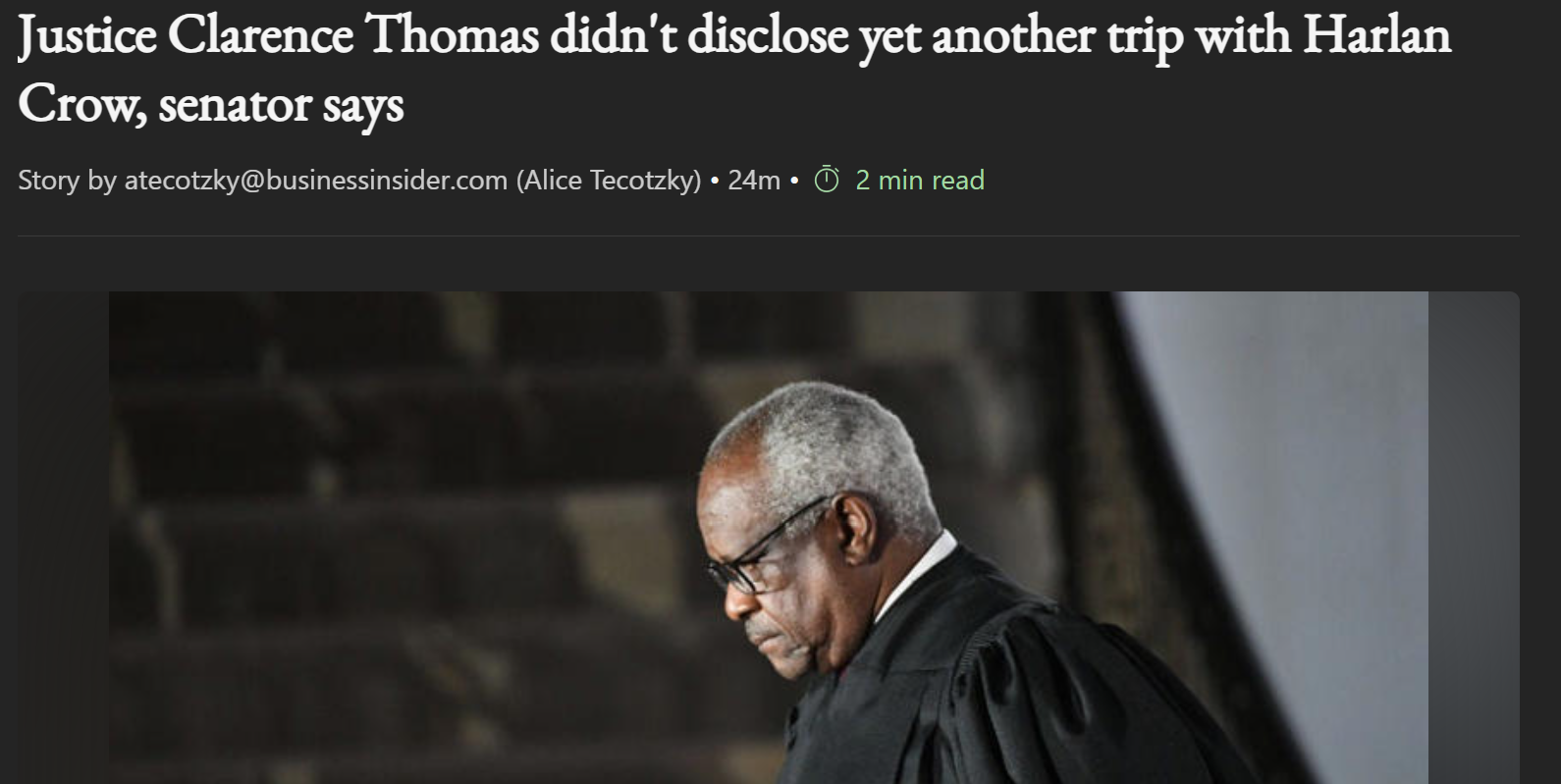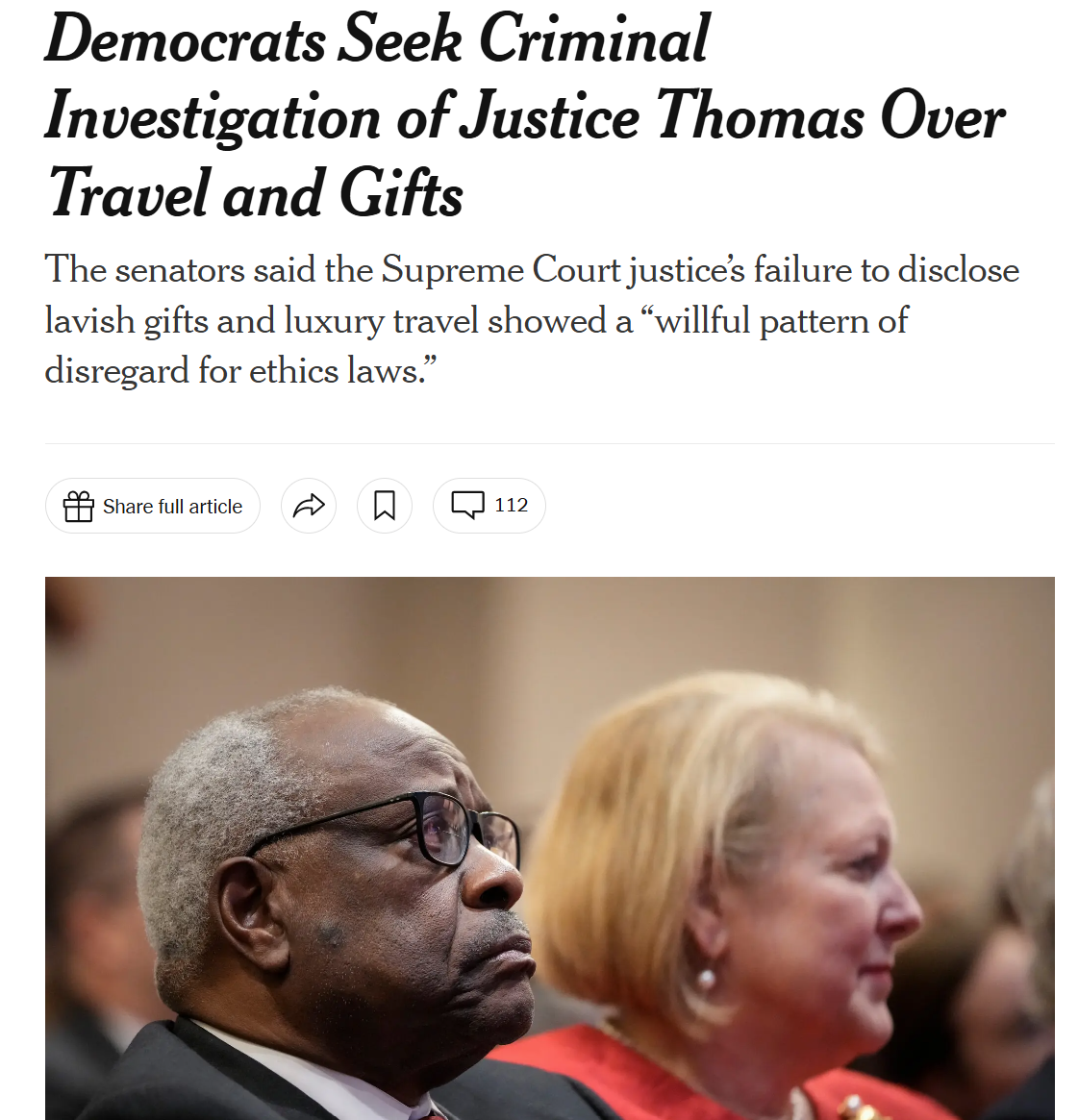 Democrats Seek Criminal Investigation of Justice Thomas Over Travel and Gifts!