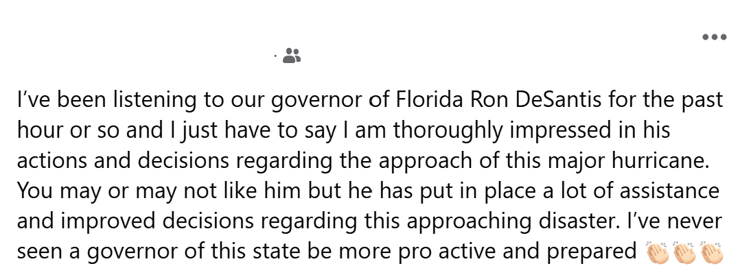 Then there were a whole bunch of thumbs-up on top of that. I'm glad for the people of Florida that Desantis might have done something to help. I wouldn't consider him doing his job helping the people he been charged with governing as any sort of redeeming quality. There isn't anything he can do that will remove the black mark against him of being a white-supremacist, anti-LGBT and a Fascist, banning books and classes on the actual real history of this country.